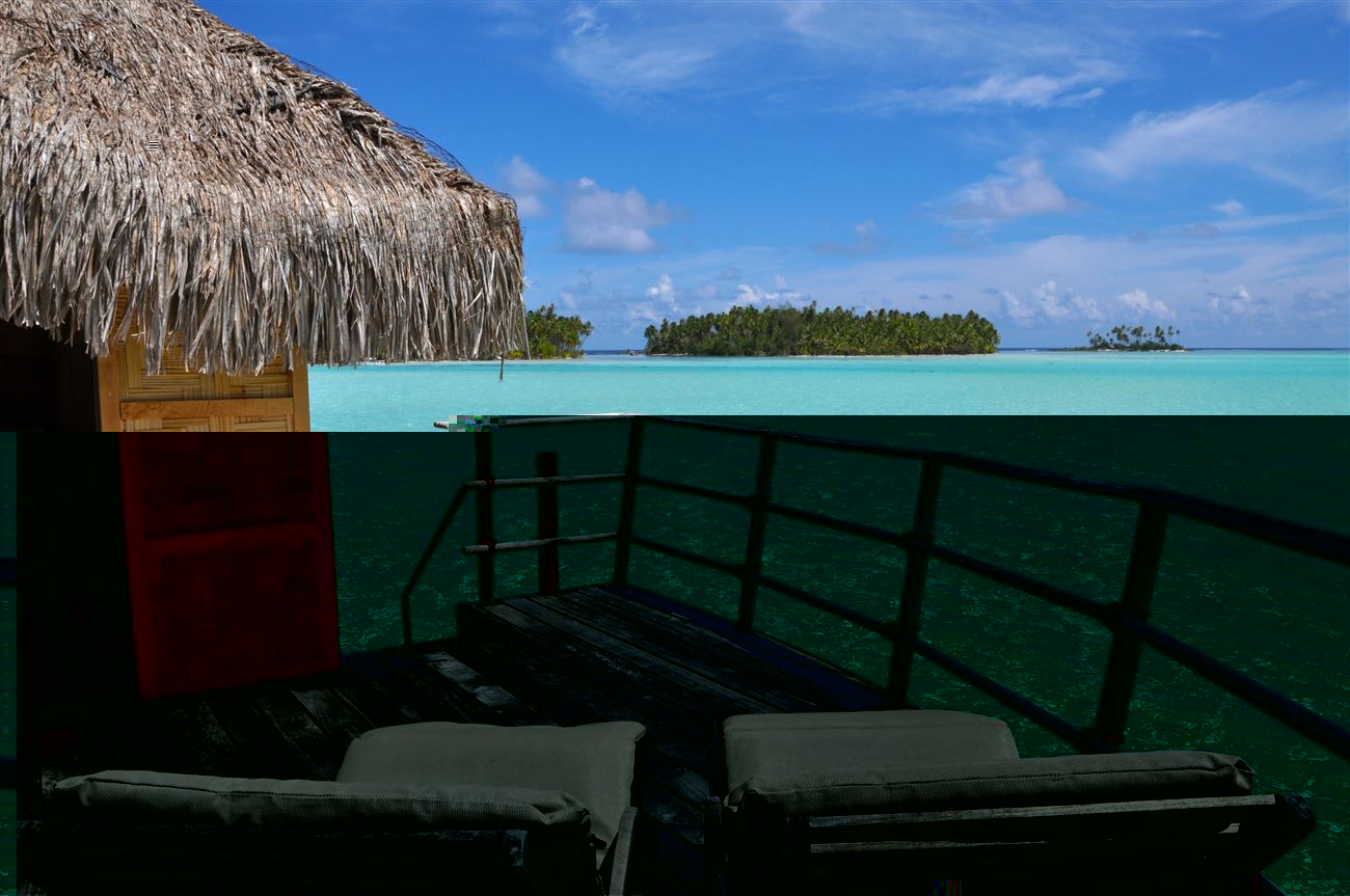 am Ende des Steges (4): Ausstattung wie Taha’ a Überwassersuite, jedoch mit unvergleichlichem 180°-Blick über die Lagune und die Hauptinsel Taha’ a.